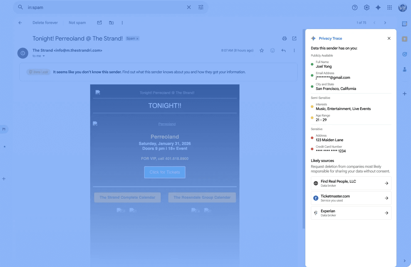 End-to-end privacy feature using Gemini AI to surface the personal data being sold about you by data brokers, and give you the tools to reclaim it.